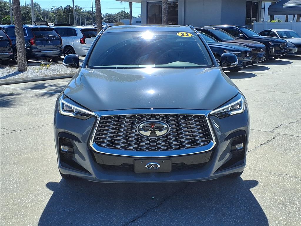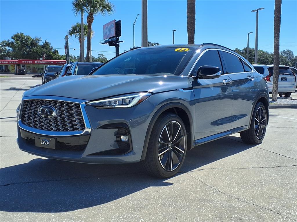 Adaptive Front Lighting System, Blind Spot Intervention, Cube Design LED Headlights, Distance Control Assist, Heated front seats, Intelligent Cruise Control, Lane Departure Prevention, Navigation system: INFINITI InTouch Navigation, Power Liftgate, Power moonroof, ProASSIST Package, Ventilated front seats. 2022 INFINITI QX55 ESSENTIAL I4 AWD CVT Slate Gray