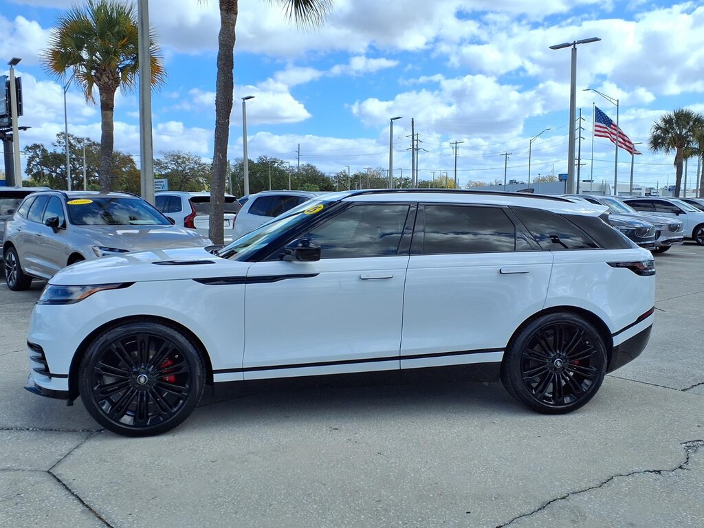 Clean CARFAX. CARFAX One-Owner. Apple CarPlay & Android Auto, Navigation system: Pivi Pro, Power Liftgate, Power moonroof, Radio: Meridian Sound System, Sirius XM Satellite Radio & HD Radio. 2025 Land Rover Range Rover Velar Dynamic SE 2.0L I4 Turbocharged AWD 8-Speed Automatic White