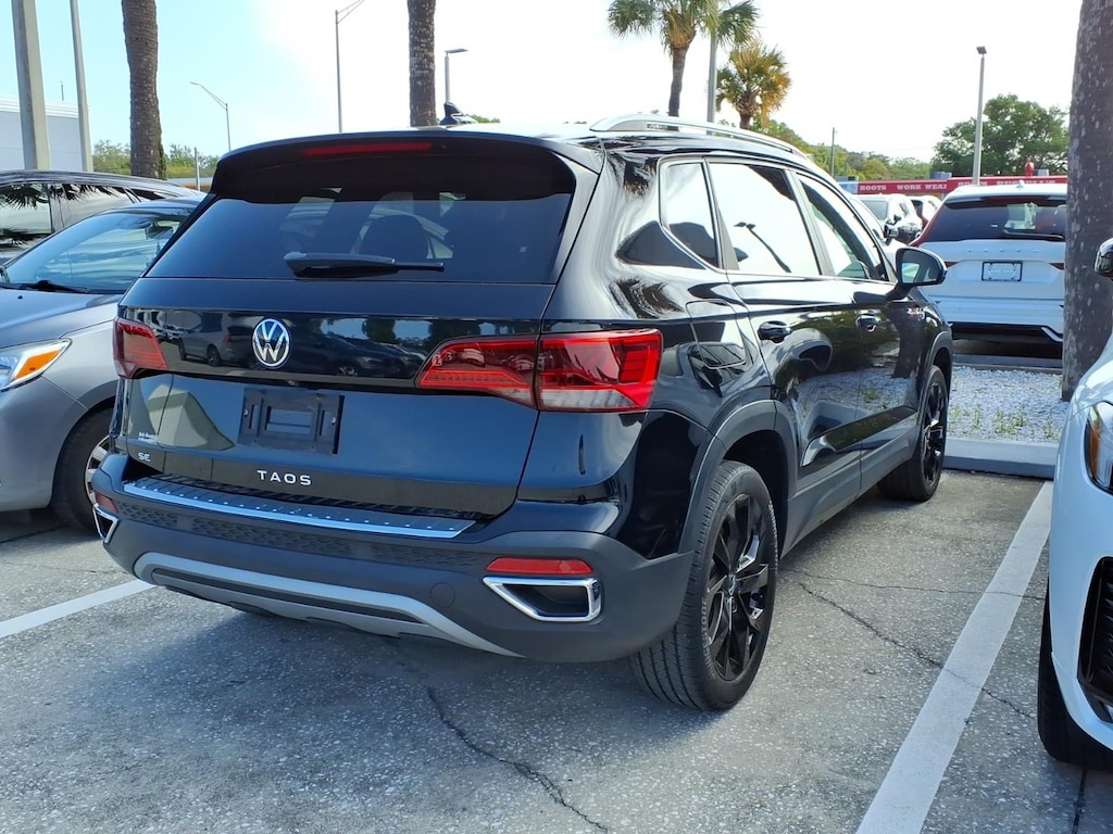Clean CARFAX. CARFAX One-Owner. ONE OWNER, CLEAN CARFAX/NO ACCIDENTS REPORTED, 4-Wheel Disc Brakes, 6 Speakers, ABS brakes, Air Conditioning, Alloy wheels, AM/FM radio: SiriusXM with 360L, Brake assist, Bumpers: body-color, CloudTex & Cloth Seating Surfaces, Compass, Delay-off headlights, Driver door bin, Driver vanity mirror, Dual front impact airbags, Dual front side impact airbags, Electronic Stability Control, Emergency communication system: Car-Net, Exterior Parking Camera Rear, Front anti-roll bar, Front Assist, Front Bucket Seats, Front Center Armrest, Front reading lights, Front Strut Rear Torsion Beam Suspension, Front wheel independent suspension, Fully automatic headlights, Heated door mirrors, Heated Front Comfort Seats, Heated front seats, Illuminated entry, Leather Shift Knob, Low tire pressure warning, Occupant sensing airbag, Outside temperature display, Overhead airbag, Overhead console, Panic alarm, Passenger door bin, Passenger vanity mirror, Power door mirrors, Power driver seat, Power steering, Power windows, Radio data system, Radio: MIB3 Composition Media AM/FM/HD, Rear anti-roll bar, Rear seat center armrest, Rear Traffic Alert, Rear window defroster, Rear window wiper, Remote keyless entry, Roof rack: rails only, Security system, Speed control, Speed-sensing steering, Split folding rear seat, Spoiler, Steering wheel mounted audio controls, Tachometer, Telescoping steering wheel, Tilt steering wheel, Traction control, Trip computer, Variably intermittent wipers. 2022 Volkswagen Taos 1.5T SE 1.5L I4 Turbocharged DOHC 16V LEV3-SULEV30 158hp FWD 8-Speed Automatic with Tiptronic Deep Black Pearl
