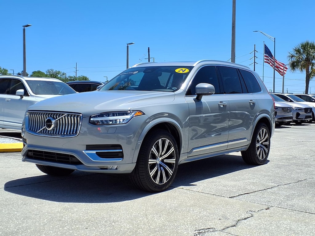CARFAX One-Owner. CLEAN CARFAX/NO ACCIDENTS REPORTED, VOLVO CERTIFIED, 10 Speakers, 3rd row seats: bucket, 4-Wheel Disc Brakes, ABS brakes, Air Conditioning, Alloy wheels, AM/FM radio: SiriusXM, Anti-whiplash front head restraints, Apple CarPlay, Auto High-beam Headlights, Auto-dimming door mirrors, Auto-dimming Rear-View mirror, Automatic temperature control, Brake assist, Bumpers: body-color, Delay-off headlights, Driver door bin, Driver vanity mirror, Dual front impact airbags, Dual front side impact airbags, Electronic Stability Control, Emergency communication system: Volvo Cars App w/4 Year Subscription, Exterior Parking Camera Rear, Four wheel independent suspension, Front anti-roll bar, Front Bucket Seats, Front Center Armrest w/Storage, Front dual zone A/C, Front fog lights, Front reading lights, Fully automatic headlights, Garage door transmitter: HomeLink, Genuine wood dashboard insert, Genuine wood door panel insert, Headlight cleaning, Heated door mirrors, Heated Front Bucket Seats, Heated front seats, Heated rear seats, Heated steering wheel, Illuminated entry, Integrated rear child seats, Knee airbag, Leather Shift Knob, Leather Upholstery, Low tire pressure warning, Memory seat, Navigation System, Occupant sensing airbag, Outside temperature display, Overhead airbag, Panic alarm, Passenger door bin, Passenger vanity mirror, Power door mirrors, Power driver seat, Power Liftgate, Power moonroof, Power passenger seat, Power steering, Power windows, Radio data system, Radio: High Performance Audio System, Rain sensing wipers, Rear air conditioning, Rear anti-roll bar, Rear dual zone A/C, Rear fog lights, Rear reading lights, Rear seat center armrest, Rear window defroster, Rear window wiper, Remote keyless entry, Security system, Speed control, Speed-sensing steering, Split folding rear seat, Spoiler, Steering wheel mounted audio controls, Tachometer, Telescoping steering wheel, Traction control, Trip computer, Turn signal indicator mirrors, Variably intermittent wipers. 2024 Volvo XC90 B6 Plus Bright Theme Certified. Volvo Certified Pre-Owned Details: